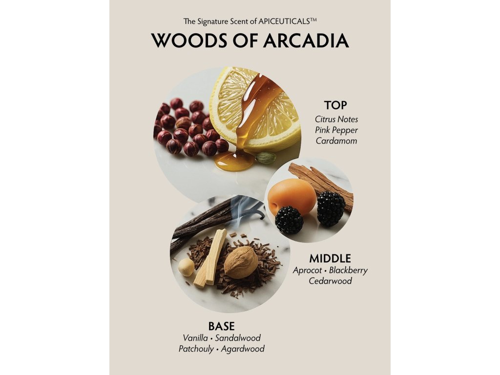 VÔŇA - Zažite skutočnú utópiu blaženosti s korenistým základom vanilky a santalového dreva, ktorý prechádza cez zmyselné srdce cédrového dreva a černice a končí nebeskými vrchnými tónmi citrusov a ružového korenia. Toto sú „Lesy Arkádie“ – jemné, zlaté a ticho silné.