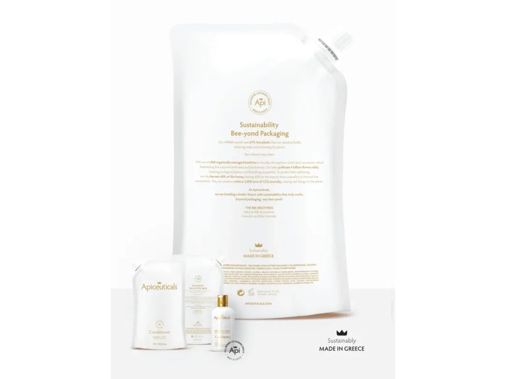 Balenie na dopĺňanie s antioxidačným kondicionérom PROPOWAX™ poskytuje ocenenú antioxidačnú starostlivosť v udržateľnom, ekologicky luxusnom formáte. Použitím o 67 % menej plastu znižuje odpad a zároveň obnovuje jemnosť, silu a rovnováhu pokožky hlavy a vlasov. Inšpirovaný harmóniou našich včiel a ich ekosystémov premieňa každodennú starostlivosť o vlasy na vedomý rituál krásy a zodpovednosti. Balenie na dopĺňanie 1 L vydrží viac ako 4 mesiace náležitého používania (≈120 aplikácií).