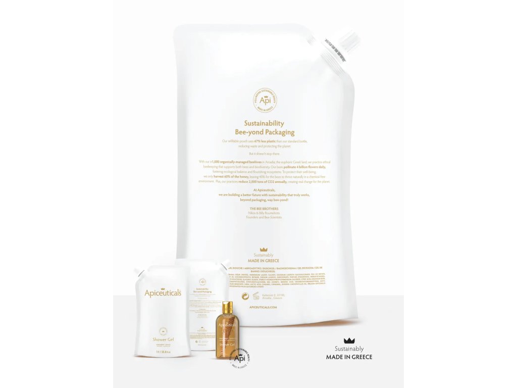 Balenie na dopĺňanie s antioxidačným sprchovým gélom PROPOWAX™ poskytuje antioxidačnú starostlivosť o telo v udržateľnom, ekologicky luxusnom formáte. Vďaka o 67 % menšiemu obsahu plastu znižuje odpad a zároveň pokožku hydratuje, jemne a chráni. Inšpirované harmóniou našich včiel a ich ekosystémov, premieňa čistenie na rituál krásy, zodpovednosti a pohody. Jedno balenie 1 L vydrží viac ako 4 mesiace pri pravidelnom používaní (≈120 aplikácií).