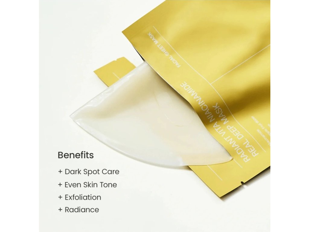 Radiant Vita Niacinamide Real Deep Mask od BIODANCE prináša rozjasnenie vďaka niacínamidu, ananásu a komplexu hyalurónových kyselín. Už po prvom použití bude pleť vyživená, pružná a svieža. Aplikácia na očistenú pleť 10–15 minút stačí na viditeľný efekt. Ideálna pre pleť, ktorá potrebuje revitalizovať, rozjasniť a nadobudnúť pružný vzhľad – vhodná pre unavenú, mdlú pleť, ktorá túži po energickom jase.