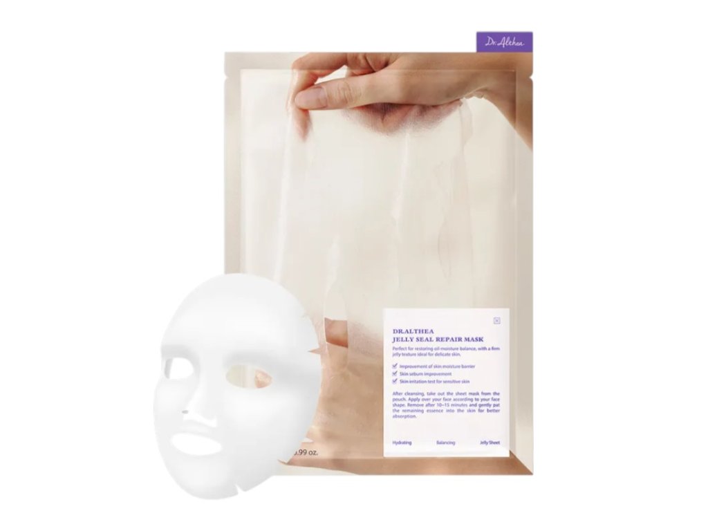 Dr. Althea Jelly Seal Repair Mask je dvojvrstvová gélová plátenná maska určená na obnovenie rovnováhy oleja a vlhkosti pokožky a zároveň hĺbkovo vyživuje a posilňuje kožnú bariéru. Jej pevná, no zároveň jemná želé textúra zaisťuje maximálnu absorpciu aktívnych zložiek bez podráždenia, vďaka čomu je ideálna pre citlivú a zmiešanú pleť. Poskytuje viacvrstvovú hydratáciu a zaisťuje dlhotrvajúce udržanie vlhkosti. Okrem toho zlepšuje pevnosť pokožky a podporuje jej regeneráciu.