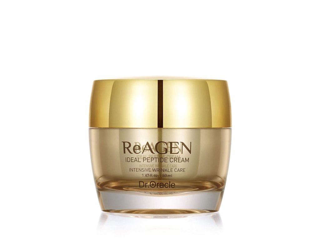 Dr. Oracle Reagen Ideal Peptide Cream - tento prémiový, vysoko koncentrovaný protivráskový pleťový krém s peptidovým komplexom obnovuje pevnosť pokožky, stimuluje syntézu prirodzeného kolagénu a elastínu a znižuje hĺbku vrások. Vďaka niacínamidu zvyšuje elasticitu, poskytuje antioxidačné účinky, zosvetľuje pigmentové škvrny, zadržiava vlhkosť v epiderme a urýchľuje regeneráciu buniek.
