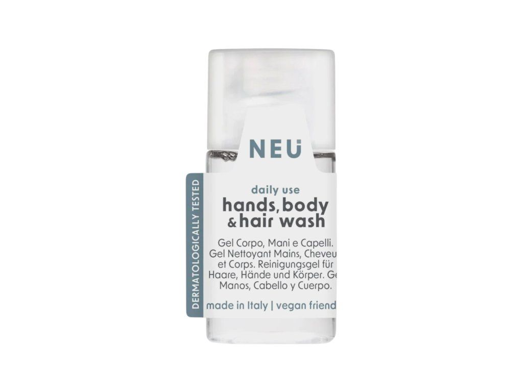 Gél na vlasy, telo a ruky NEU so sviežou kvetinovou vôňou dodáva pocit čistoty a príjemnej sviežosti počas celého dňa. Jeho vegánske zloženie s 95 % ingrediencií prírodného pôvodu je šetrné k pokožke aj k prírode. Je to praktický multifunkčný prípravok hotelovej kozmetiky, navrhnutý pre maximálny komfort hostí počas pobytu. Spája v sebe jemnú starostlivosť o telo, ruky aj vlasy v jednom produkte, čím prináša jednoduché a efektívne riešenie každodennej hygieny.