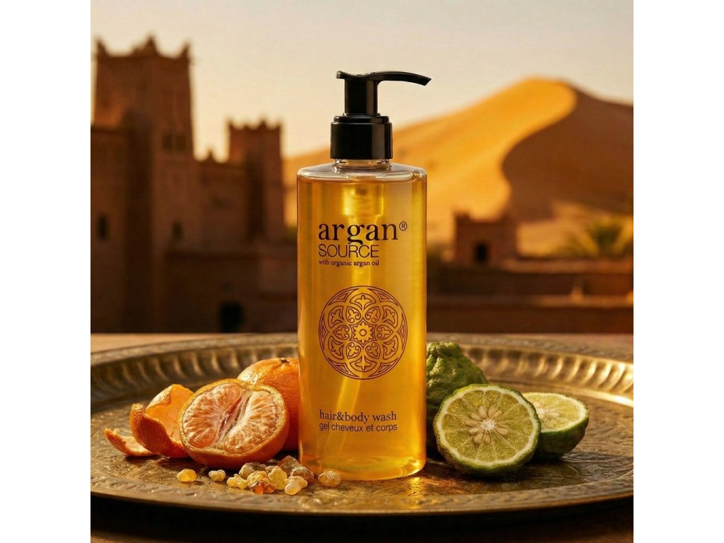Hotelová kozmetika ARGAN SOURCE, ktorá obsahuje organický arganový olej. Elixír krásy, ktorý sa stal nutnosťou v kozmetických prípravkoch vďaka jeho antioxidantom. Má taktiež zvláčňujúce a zvlhčujúce účinky. Očarujúca vôňa a elegantné saténové prevedenie privedú vašich hostí do atmosféry Maroka. Sofistikovaná kvalita inšpirovaná zlatom púšte.