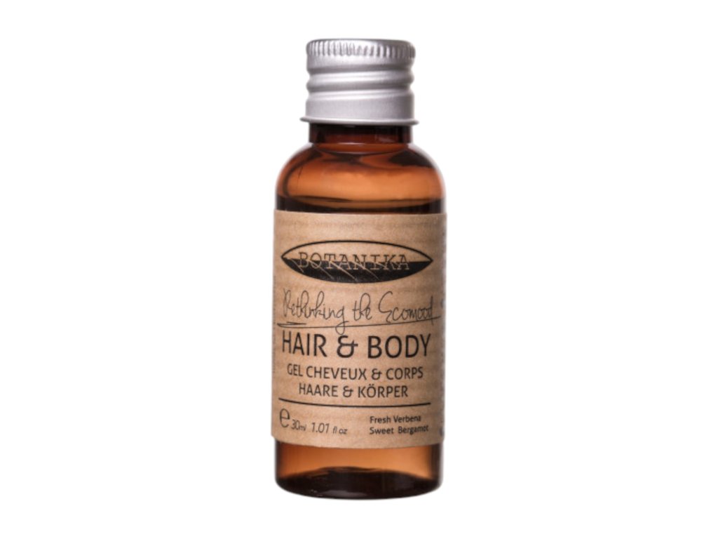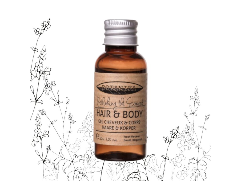 Šampón a gél Botanika Verbena & Bergamot 2 v 1 je vylepšené o zloženie so sviežou vôňou verbeny a bergamotu. Je ideálne na každodenné použitie a hodí sa do každého priestoru a do každej miestnosti vnesie nádych kultivovanosti a sviežosti. Táto ekologická kozmetika je vyrobená bez konzervačných látok, bez parabénov a nie je testovaná na zvieratách. Dávkovače sú 100% recyklovateľné a tak šetríte našu prírodu. Štylizovaný dizajn 30 ml fliaš Botanika, pripomína staré fľaše z lekárne, podmaní hotelových hostí originalitou a príjemným prekvapením je návrat do histórie. Dôkladne čistí vlasy a telo a zanecháva ich s jemnou citrusovou vôňou.