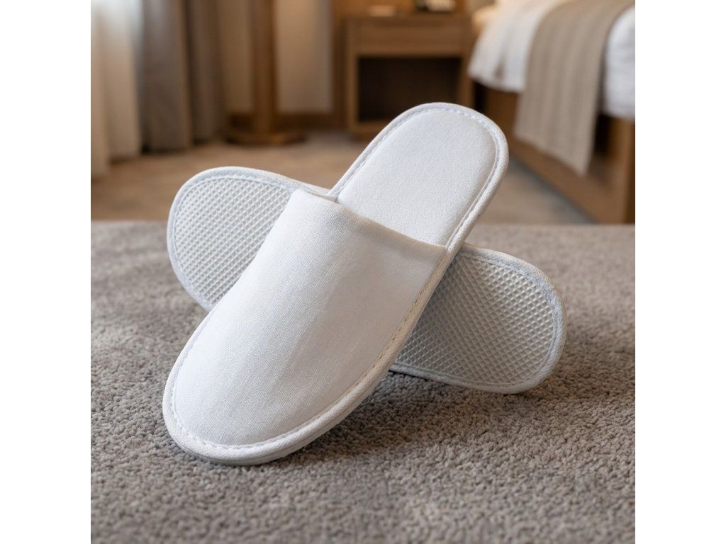 Hotelové papuče HS12 POLYESTER SOFT sú veľmi obľúbené vďaka svojej vysokej bielosti a farebnej stálosti. Nemajú tendenciu žltnúť (pri správnom uskladnení).