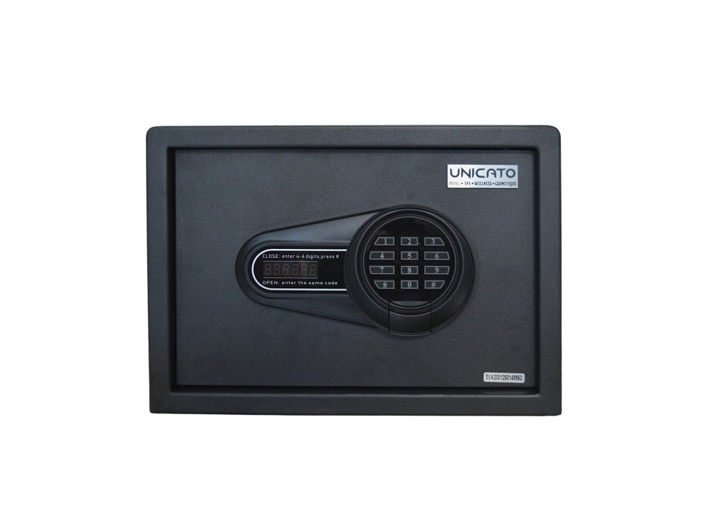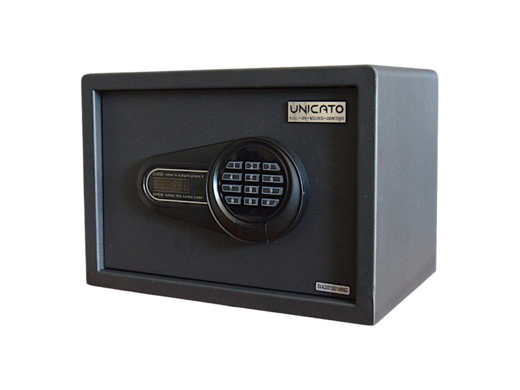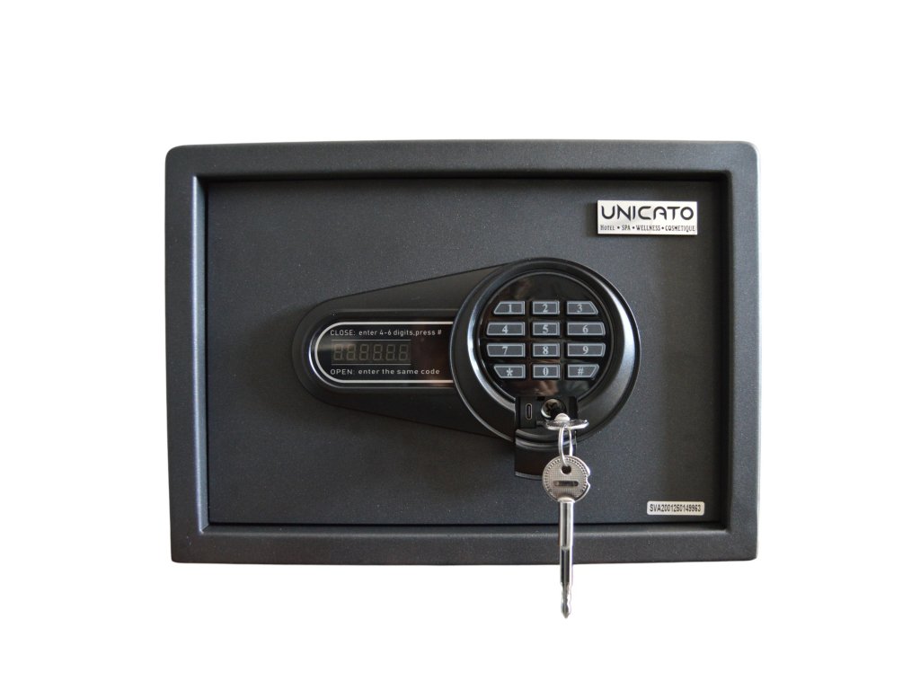 Hotelový bezpečnostný trezor HAMAL je vhodný do každej izby. Ľahko sa programujú kódy, digitálna klávesnica umožňuje jednoduchý prístup do trezoru pomocou používateľského alebo hlavného kódu. Ideálne pre časté striedanie používateľov (hotelových hostí).