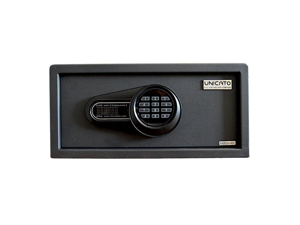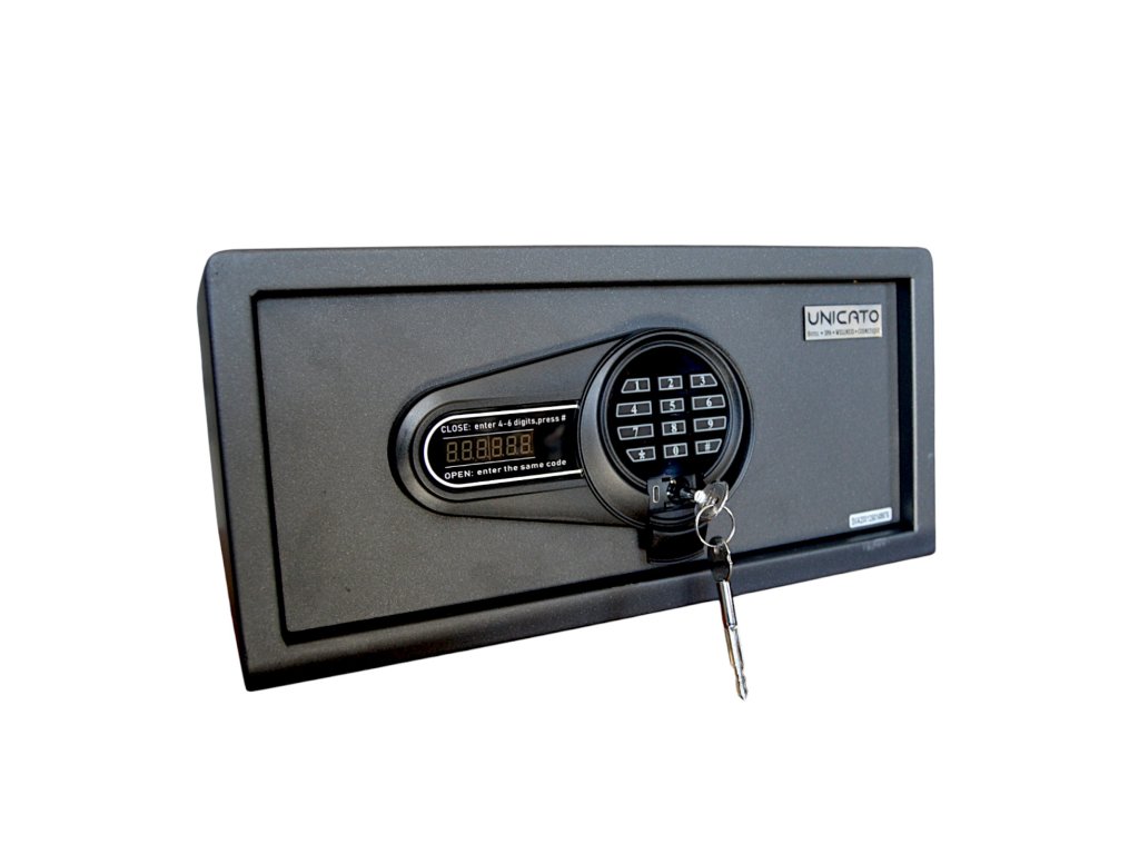 Hotelový bezpečnostný trezor HAMAL je vhodný do každej izby, kancelárie alebo domova. Ľahko sa programujú kódy, digitálna klávesnica umožňuje jednoduchý prístup do trezoru pomocou používateľského alebo hlavného kódu. Ideálne pre časté striedanie používateľov (hotelových hostí).