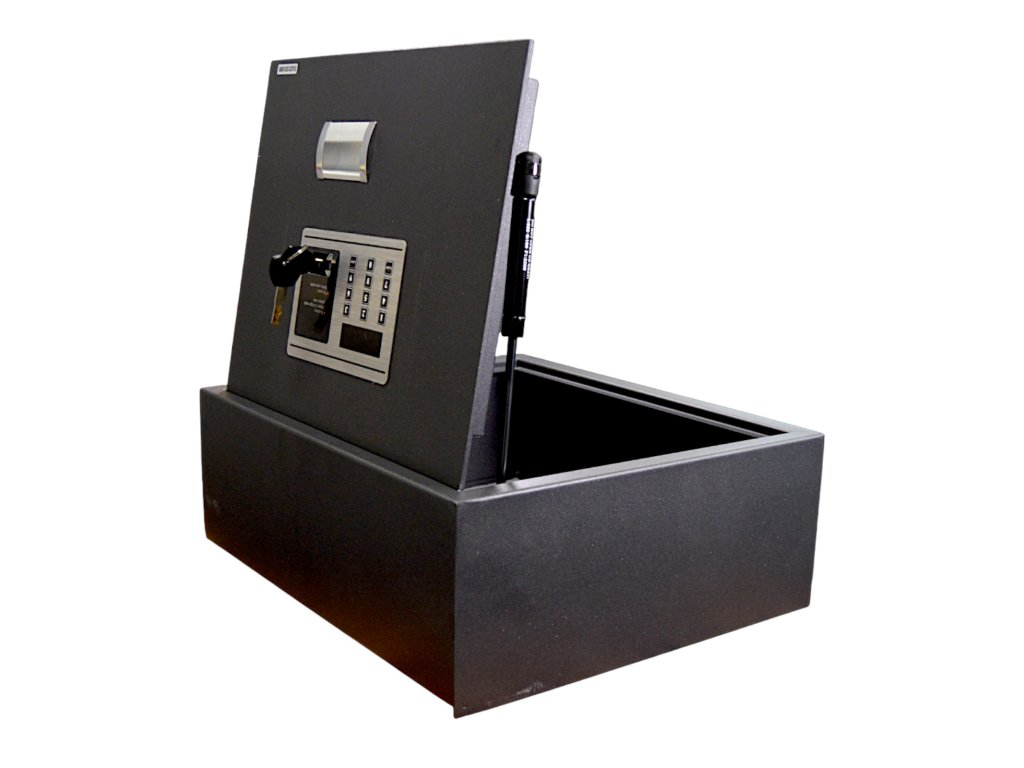 NAOS model 5001 - najjednoduchšia voľba pre hotely, kancelárie a domácnosti. Motorizovaný digitálny trezor ponúka moderné, kompaktné a dodatočné zabezpečenie pre hotelové, rezidentské aj firemné zabezpečenie. Otváranie do hora je vhodné pre uloženie trezora do zásuviek alebo skríň. Dvere sejfu je možné otvoriť až do uhla 90° pomocou hydraulického zdvíhania.
