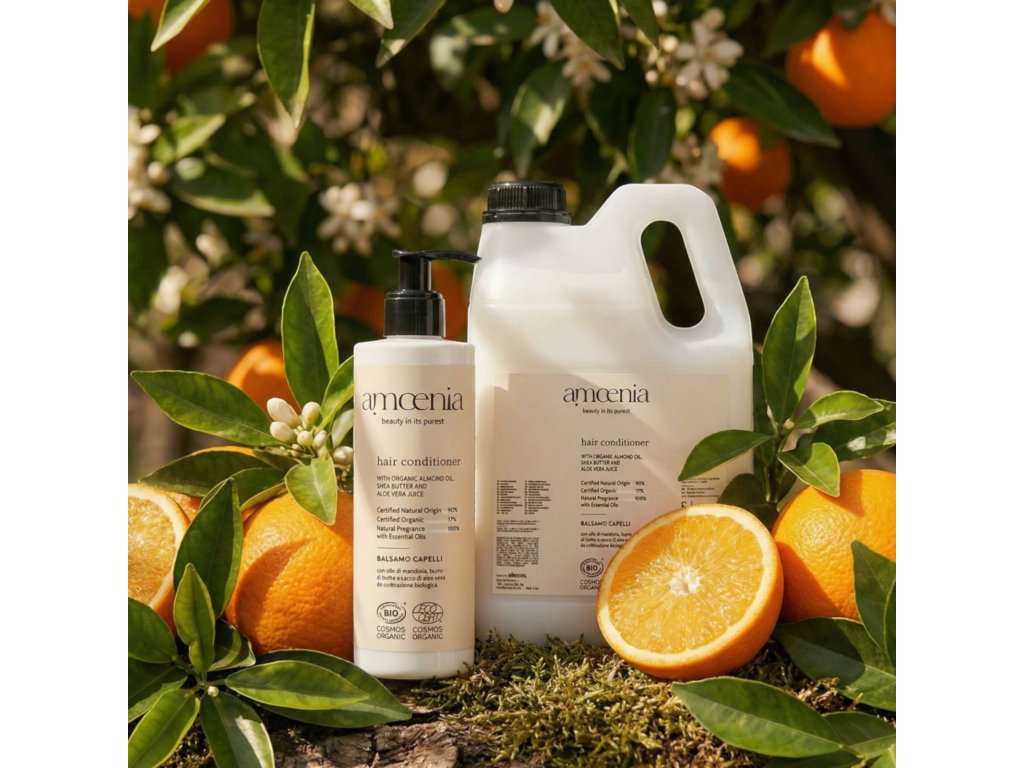Kondicionér 5L AMOENIA (kanister) je obohatený o organicky pestované prísady ako mandľový olej, bambucké maslo a aloe vera šťava, vlasy hydratuje, regeneruje a zanecháva ich jemné a rozmotané. Ideálny na časté umývanie.