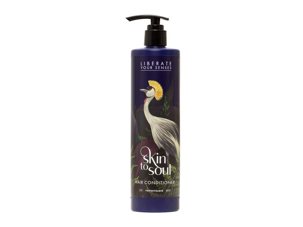 Nový vlasový kondicionér Skin to Soul, inšpirovaný modernou vedou a starovekými kozmetickými rituálmi, uctieva hlboké spojenie medzi telom a dušou. Jeho bohaté hydratačné zloženie udrží vaše vlasy hladké a hydratované. Je 100 % vegánsky a obsahuje prebiotiká, vitamín E a aloe.