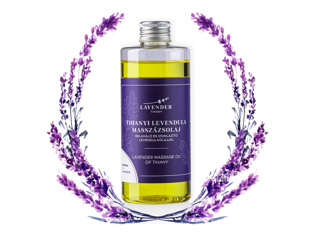 Jemný masážny olej Lavender Tihany s prírodnými pokladmi ako je slnečnicový olej, olej zo sladkých mandlí a vitamín E na ochranu a regeneráciu pokožky. Vďaka špeciálnym zložkám sa rýchlo vstrebáva a zanecháva hodvábny pocit. 100% čistý levanduľový esenciálny olej pomáha uvoľniť telo a myseľ počas masáže. Od väčšiny masážnych olejov na trhu sa odlišuje vďaka svojim ušľachtilým zložkám, ako je mandľový olej, bylinný levanduľový olej, olivový skvalén alebo frakcionovaný kokosový olej.