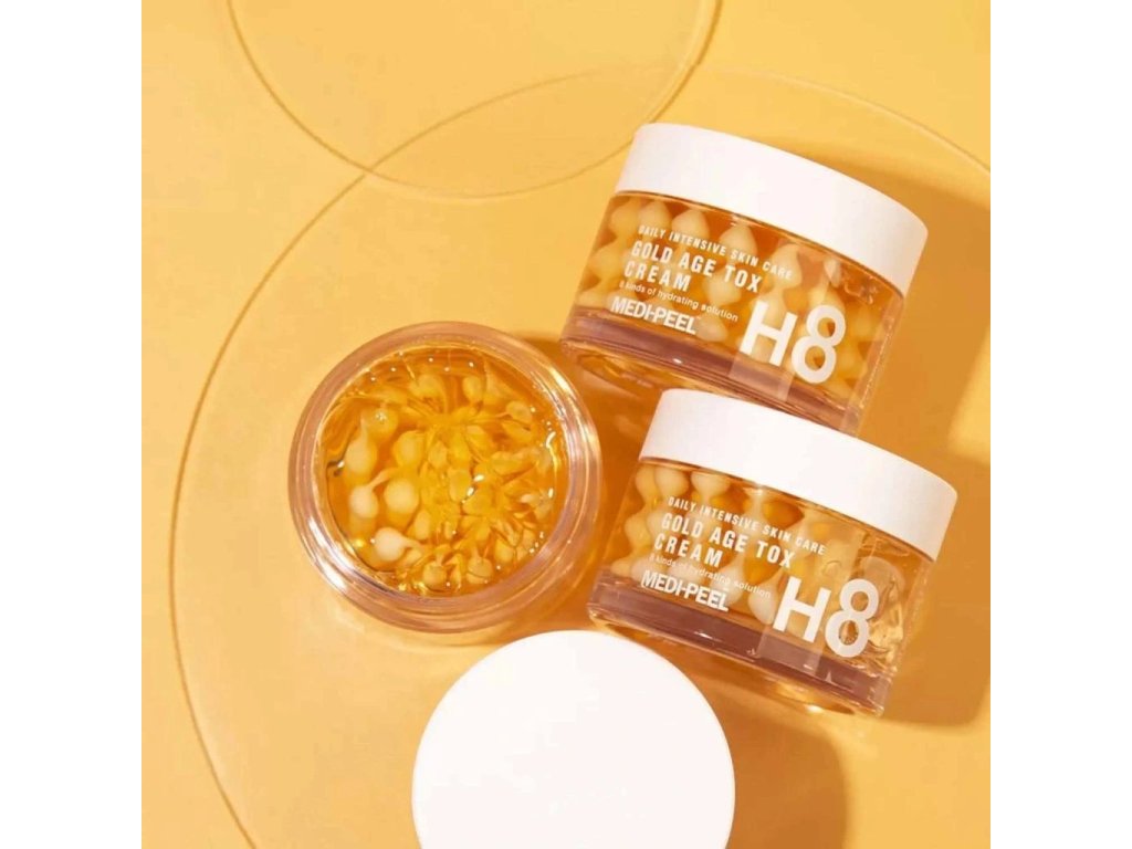 Gold Age Tox Cream - Anti-age krém obsahuje 2 textúry. Hydratačný gél a 57 kapsúl PLA, vďaka čomu bude pokožka intenzívne hydratovaná, vyživená. Gélová textúra je obohatená o kyselinu hyalurónovú, ktorá hydratuje pokožku do hĺbky. Krémové kapsulky obsahujú niacinamid. PLA kyslinu, včelí vosk, proteíny z priadky morušovej, aminokyseliny, adenozín a komplex ceramidov CERAcare AC-1 ktorý intenzívne bojuje proti vráskam. Redukuje pocit stiahnutej pokožky a dehydratácie. Pomocou adenozínu pomáha redukovať viditeľné vrásky. Je vhodný aj pre citlivú pokožku.