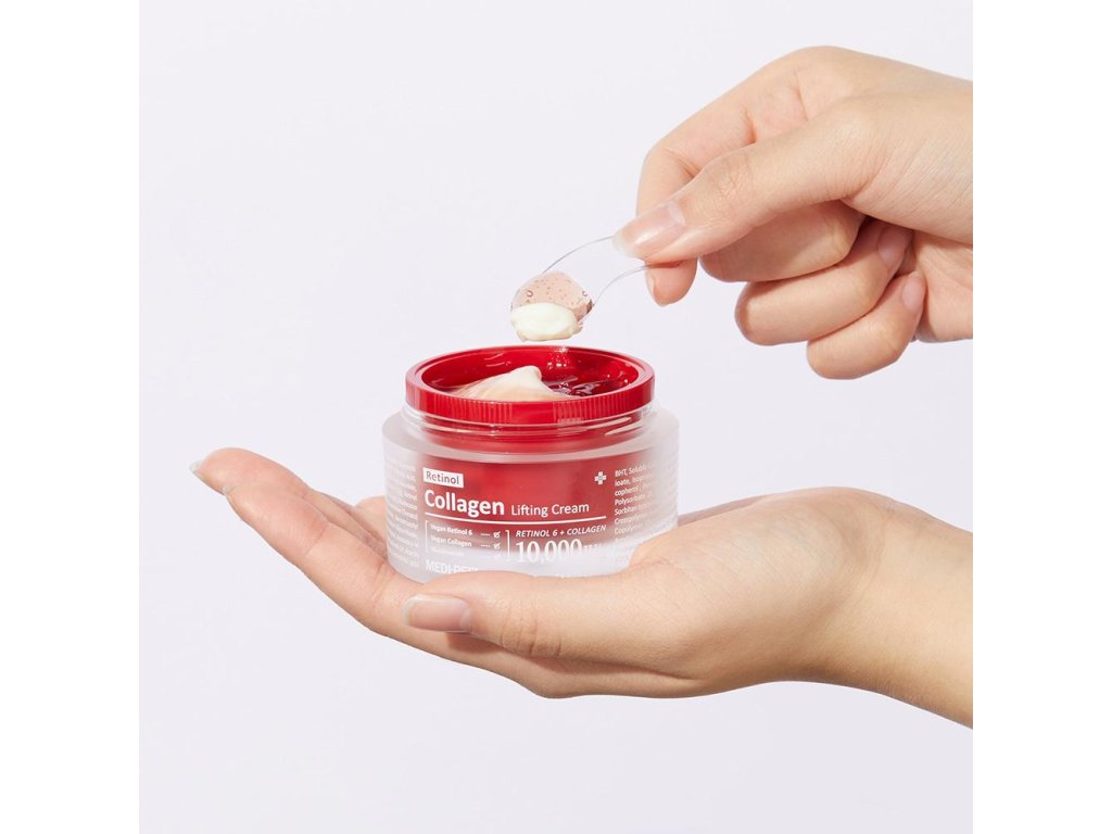 MEDI-PEEL Retinol Collagen Lifting Cream je luxusný krém navrhnutý na intenzívne spevnenie a vyhladenie pokožky. Tento krém kombinuje účinné zložky ako retinol a kolagén, ktoré spoločne pracujú na redukcii jemných vrások, zlepšení elasticity pokožky a poskytovaní hĺbkovej hydratácie. Pravidelné používanie vedie k viditeľne mladistvejšej, pevnejšej a žiarivejšej pleti.
