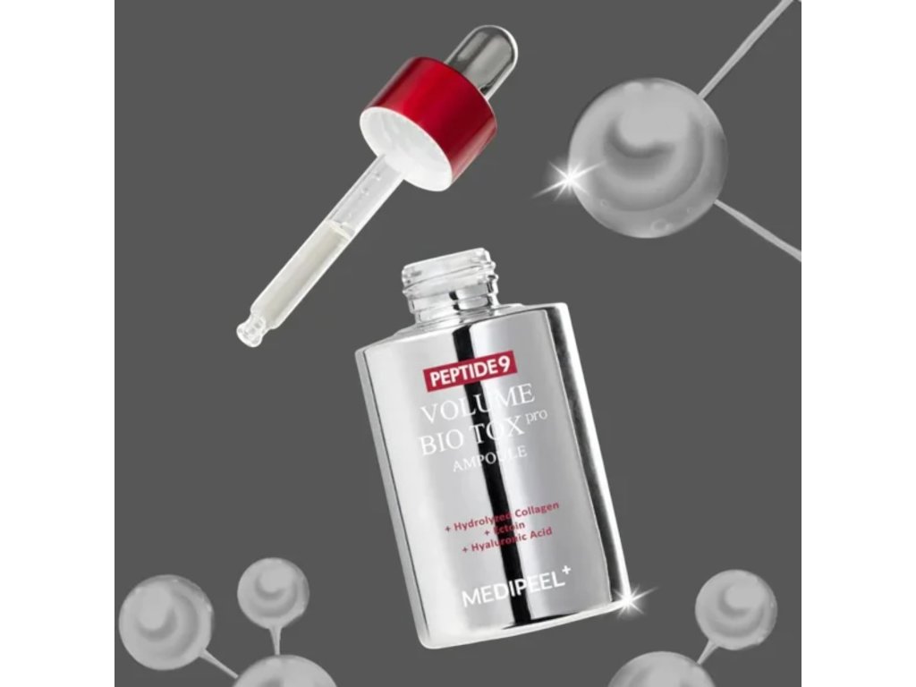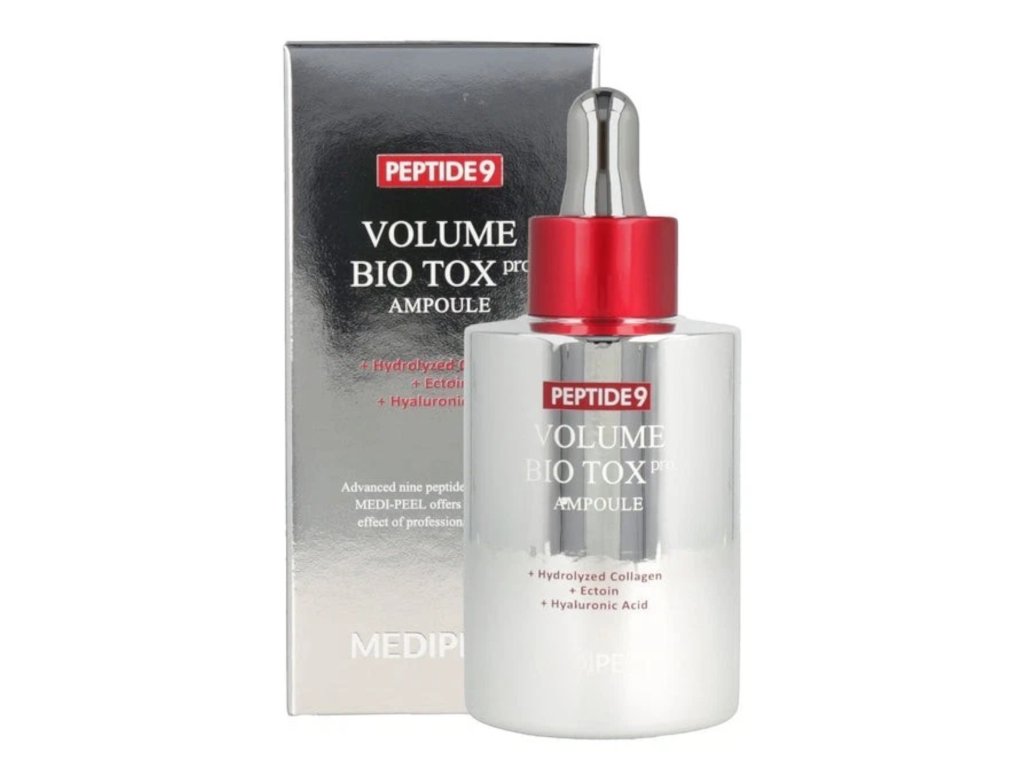MEDI‑PEEL Peptide 9 Volume Bio Tox Ampoule PRO – Spevnenie, lifting a hydratácia, ktorá pomáha vyhladzovať vrásky, spevňuje kontúry tváre, zlepšuje elasticitu pokožky a dodáva jej mladistvý a plný vzhľad. Intenzívne hydratuje a revitalizuje pokožku, podporuje tonus a elasticitu a obnovuje pevnosť pokožky.