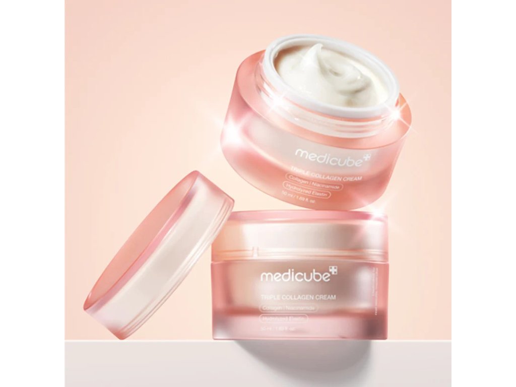 Krém Medicube Triple Collagen Cream je navrhnutý tak, aby zlepšoval elasticitu pokožky, poskytoval hĺbkovú hydratáciu a pomáhal redukovať známky starnutia. Krém má krémovú a hydratačnú textúru, ktorá sa ľahko nanáša a poskytuje okamžitú úľavu od suchosti a dehydratácie. Je vhodný pre všetky typy pleti, vrátane citlivej pokožky. Klinické štúdie preukázali, že pri použití tohto krému došlo k zlepšeniu elasticity pokožky už po dvoch týždňoch a k redukcii výskytu vrások po troch týždňoch používania.
