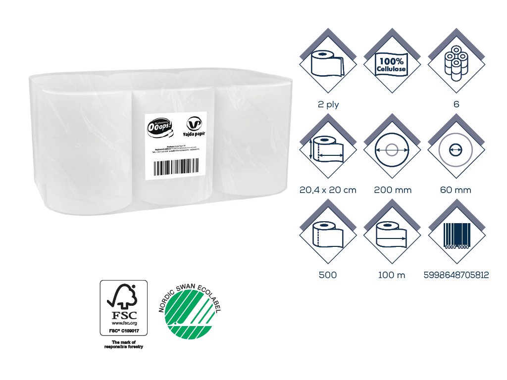 Midi papierové utierky v rolke, 2-vrstvové, 100m, 500 útržkov, 6ks v balení Ooops!