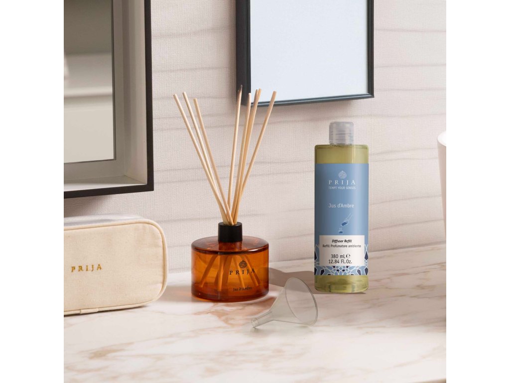 Doplňte, znovu použite, rozmaznávajte sa - Náplň do difuzéra Prija Jus d’Ambre v 380 ml fľaštičke.