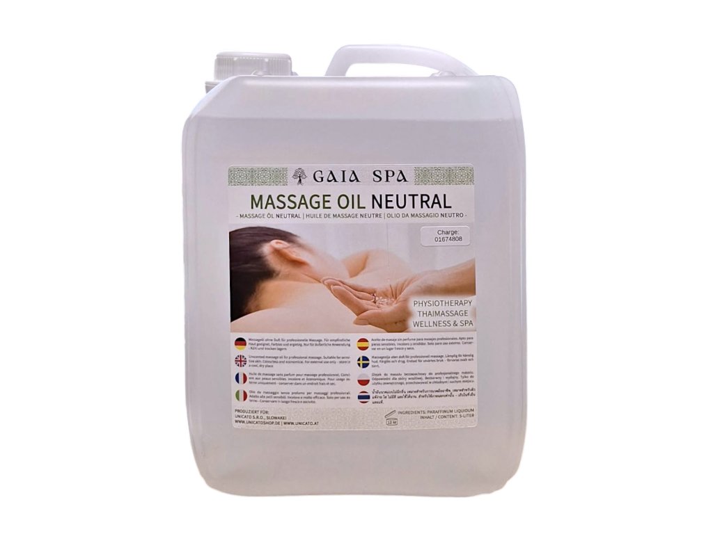 Masážny olej GAIA SPA predstavujú originálne oleje v súlade s prísnymi špecifikáciami pre kozmetiku v EÚ. Všetky ingrediencie pochádzajú od profesionálnych dodávateľov v Európe. Pre všetky zložky sú k dispozícii komplexné analýzy, vyhlásenia a hodnotenia. Bezpečnosť všetkých hotových masážnych olejov je potvrdená nezávislým testovacím inštitútom. Všetky masážne oleje sú vyrábané v Nemecku - made in Germany. Neutrálny parafínový masážny olej bez parfumácie GAIA SPA má vlastnosti typických masážnych olejov z Thajska. Patria sem zložky, vône, trenie, výťažnosť a ošetrujúci účinok.