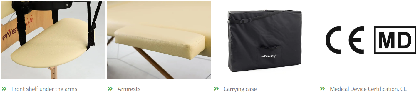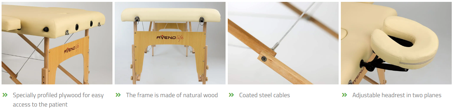 Sofia je dvojsegmentový drevený masážny stôl od AVENO LIFE, ideálny pre každého, kto hľadá overené riešenia za prijateľnú cenu. Pohodlná doska stola, kompletné vybavenie a špeciálny dizajn nôh uľahčujúci prístup k pacientovi. To sú vlastnosti, vďaka ktorým je Sofia vynikajúcou voľbou pre rôzne masážne techniky, manuálnu terapiu a kozmetické procedúry.
