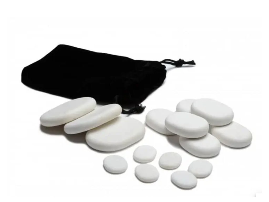 Studené kamene sa dajú použiť aj na jemnú masáž citlivých povrchov očí na zníženie opuchov, tmavých kruhov a zlepšenie tónu pleti. Biele mramorové kamene prírodného pôvodu sú vyrábané ručne, čo zaručuje ich vysokú kvalitu a prírodné sfarbenie. Používajú sa po masáži horúcimi kameňmi a stimulujú pokožku.