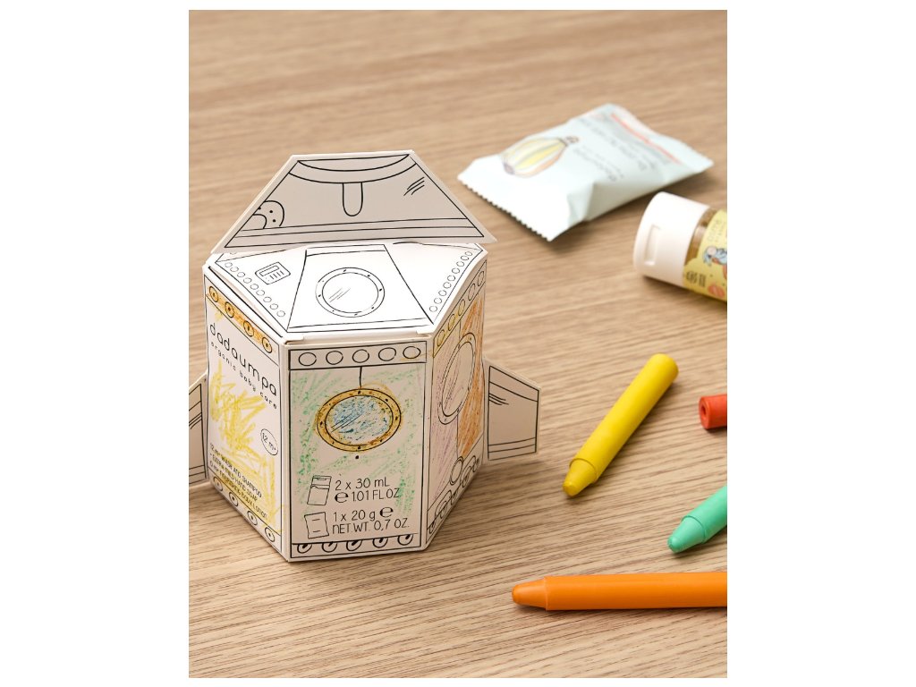 Dadaumpa sada do kúpeľa a starostlivosť o pokožku sa dodáva v roztomilom hravom farebnom balení. Ochranné a umývacie produkty, ktoré sú súčasťou balenia, boli testované pod pediatrickým dohľadom, aby sa zabezpečila ich neagresívna povaha. Produkty, vyvinuté s použitím najlepších technológií, sú bohaté na biologicky aktívne zložky.