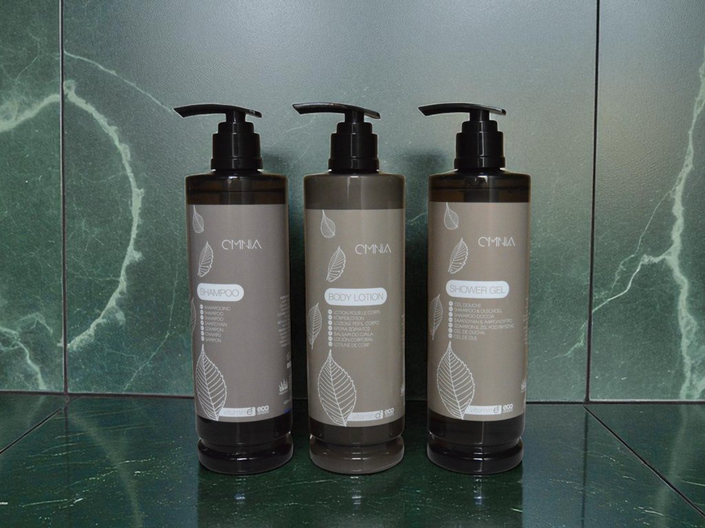 Šampón Omnia 400ml je hotelový produkt, ktorý kombinuje účinnú starostlivosť s elegantným dizajnom. Jeho zloženie na báze extraktu zo zeleného čaju a vitamínu E jemne čistí vlasy, hydratuje ich a dodáva im prirodzený lesk. Svieža, jemná vôňa zeleného čaju poskytuje pocit relaxácie a pohodlia.