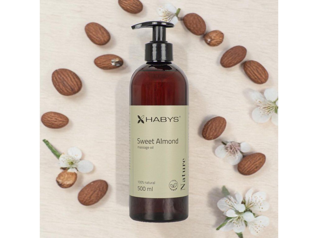 Masážny olej Nature Sweet Almond od HABYS je prémiový 100 % prírodný a vegánsky produkt určený na profesionálnu masáž a domáce ošetrenie tváre.