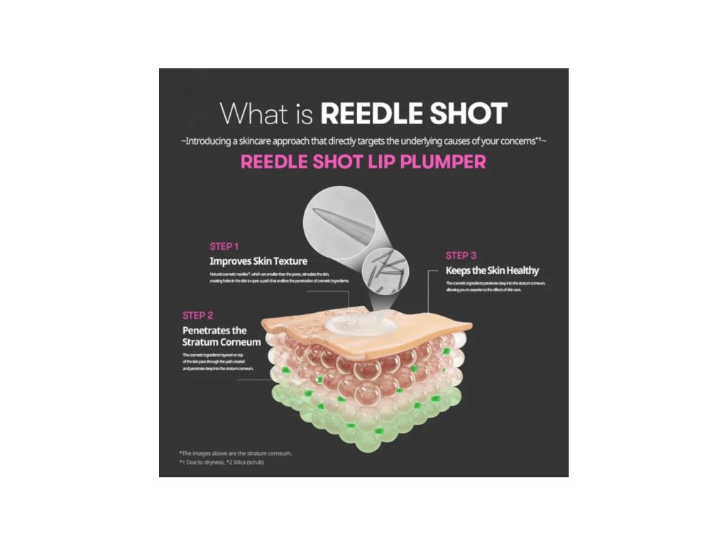 VT COSMETICS Reedle Shot Lip Plumper Beginner je ideálny pre začiatočníčky – poskytuje jemný, no viditeľný plumping efekt. Obsahuje extrakt z centelly asiatica a propolis, ktoré pery vyživujú a podporujú ich regeneráciu. Rozdiel uvidíš aj ucítiš už po prvej aplikácii.