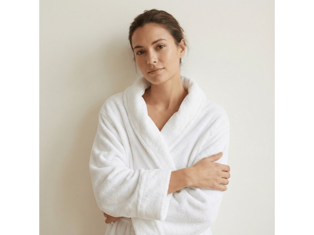 Župan FROTE s golierom POLAR, Biely (400gr)